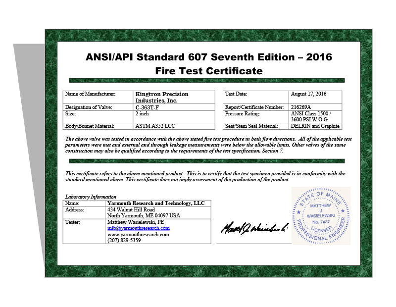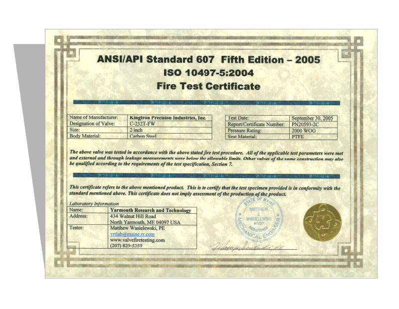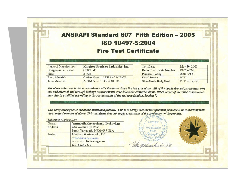 CERTIFICATES HOME CERTIFICATES ISO & CE CE-Certificate ISO 9001-2015 ISO 9001:2000 PED 97/23/EC Module B1 PED 97/23/EC Module D ISO 9001-2008 ISO 9001-2008 CE Certificate – 2017 API 607 5th Edition Fire Test Approval Fire Test Certificate for C-203T-F Fire Test Certificate for C-232T-FW Fire Test Certificate for C-362T-F Fire Test Certificate for S-232T-FW Fire Test Certificate for C-363T-F Fire Test Certificate for S-122T-F Canadian Registration Number C.R.N CRN for Ontario CRN-for-Quebec CRN-for-all-Provinces CRN-for-ALBERTA Fugitive Emission Certificate